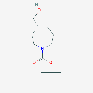 tert-Butyl 4-(hydroxymethyl)azepane-1-carboxylate is a bifunctional organic compound featuring a seven-membered azepane ring. This saturated heterocycle is N-protected with a tert-butoxycarbonyl (Boc) group and substituted at the 4-position with a hydroxymethyl group. This unique arrangement of functional groups—a sterically hindered, acid-labile carbamate and a versatile primary alcohol—makes it a valuable and strategic building block in modern medicinal chemistry.
