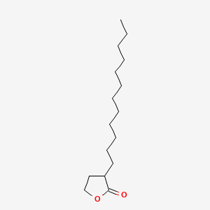 2(3H)-Furanone, 3-dodecyldihydro- is an organic compound classified as a γ-butyrolactone. It features a five-membered dihydrofuranone ring substituted with a long, twelve-carbon alkyl chain (dodecyl group) at the third position. This structure is a type of lactone, which are cyclic esters. The specific placement of the dodecyl group and the saturated furanone ring are key determinants of its chemical and physical properties.