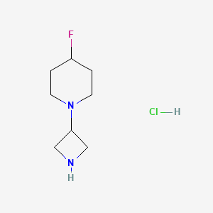 The mechanism of action of 1-(Azetidin-3-yl)-4-fluoropiperidine hydrochloride involves its interaction with specific molecular targets and pathways. For example, it may inhibit certain enzymes or receptors, leading to changes in cellular processes. The exact mechanism depends on the specific biological activity being studied .