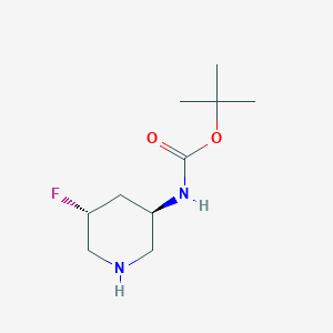 The mechanism of action of tert-Butyl ((3R,5R)-5-fluoropiperidin-3-yl)carbamate involves its interaction with specific molecular targets. The fluorine atom on the piperidine ring can influence the compound’s binding affinity and selectivity towards these targets. The tert-butyl group provides steric hindrance, which can affect the compound’s reactivity and stability .