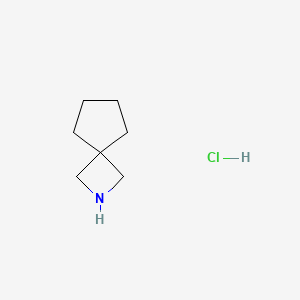 The 2-Azaspiro[3.4]octane framework is a specific type of azaspirocycle where a four-membered azetidine (B1206935) ring is fused to a five-membered cyclopentane (B165970) ring through a common carbon atom. This particular combination of ring sizes results in a compact and rigid structure with a distinct conformational profile. The synthesis of this framework has been achieved through various routes, including the annulation of the cyclopentane ring or the four-membered ring from readily available starting materials. uni.lu The hydrochloride salt form enhances the compound's stability and aqueous solubility, making it a convenient form for use in various chemical applications. The structural properties of this compound are a subject of interest for creating diverse molecular libraries for drug discovery.