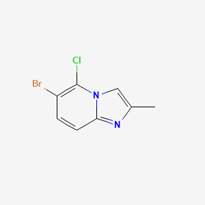 The synthesis of 6-Bromo-5-chloro-2-methylimidazo[1,2-a]pyridine can be achieved through various synthetic routes. One common method involves the cyclization of appropriate precursors under specific reaction conditions. For instance, the condensation of 2-aminopyridine with 1,3-dichloroacetone or 1,1,3-trichloroacetone can yield the desired imidazo[1,2-a]pyridine scaffold . Additionally, metal-free and aqueous synthesis methods have been developed to facilitate the preparation of these compounds under environmentally friendly conditions .