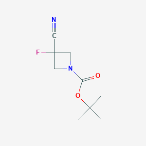 The mechanism of action of tert-Butyl 3-cyano-3-fluoroazetidine-1-carboxylate involves its interaction with specific molecular targets. The cyano and fluoro groups can participate in hydrogen bonding and electrostatic interactions, influencing the compound’s binding affinity to enzymes and receptors. The azetidine ring provides structural rigidity, which can enhance the compound’s stability and specificity in biological systems .