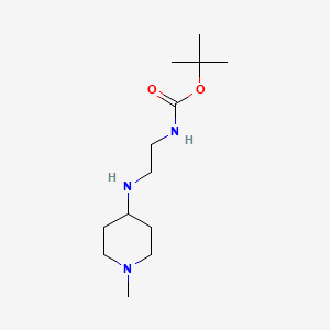 tert-Butyl N-[2-[(1-methylpiperidin-4-yl)amino]ethyl]carbamate is a chemical compound that plays a significant role in various scientific and industrial applications. It is known for its unique structure, which includes a tert-butyl group, a piperidine ring, and a carbamate moiety. This compound is often used as an intermediate in the synthesis of more complex molecules, particularly in the pharmaceutical industry.