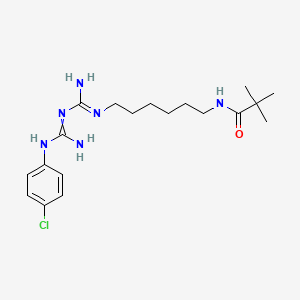 The synthesis of N-(6-(3-(N-(4-Chlorophenyl)carbamimidoyl)guanidino)hexyl)pivalamide involves multiple steps. The general synthetic route includes the reaction of 4-chlorophenyl isocyanate with hexamethylenediamine to form an intermediate, which is then reacted with pivaloyl chloride to yield the final product. The reaction conditions typically involve the use of organic solvents and controlled temperatures to ensure the desired product is obtained with high purity and yield.
