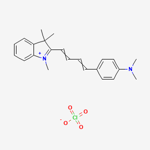 N,N-dimethyl-4-[(1E,3E)-4-(1,3,3-trimethylindol-1-ium-2-yl)buta-1,3-dienyl]aniline;perchlorate is a complex organic compound known for its unique structural properties and applications in various scientific fields. This compound is characterized by the presence of an indolium moiety, a butadienyl linkage, and a dimethylaniline group, making it a versatile molecule in organic synthesis and research.