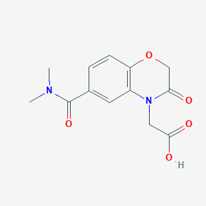 {6-[(Dimethylamino)carbonyl]-3-oxo-2,3-dihydro-4H-1,4-benzoxazin-4-yl}acetic acid, with the molecular formula C13H14N2O5 and a molecular weight of approximately 278.26 g/mol, is a complex organic compound belonging to the benzoxazine class. This compound has garnered attention for its potential therapeutic applications due to its diverse biological activities, particularly in medicinal chemistry.