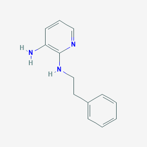 2-N-(2-Phenylethyl)pyridine-2,3-diamine is a pyridine derivative characterized by a phenylethyl substituent at the N2 position of the pyridine-2,3-diamine scaffold. This compound belongs to a broader class of pyridine diamines, which are studied for their diverse chemical and biological properties. The core pyridine-2,3-diamine structure consists of a six-membered aromatic ring with two adjacent amine groups at the 2- and 3-positions, enabling versatile reactivity and hydrogen-bonding capabilities . Substitutions at the N2 or N3 positions, such as the phenylethyl group in this compound, modulate electronic, steric, and solubility properties, influencing applications in medicinal chemistry and materials science.