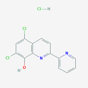5,7-Dichloro-2-pyridin-2-ylquinolin-8-ol;hydrochloride is a synthetic compound known for its diverse applications in various fields such as chemistry, biology, and medicine. This compound is characterized by its unique structure, which includes a quinoline backbone substituted with chlorine atoms and a pyridine ring.