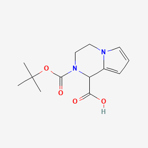The mechanism of action of 2-(tert-butoxycarbonyl)-1H,3H,4H-pyrrolo[1,2-a]pyrazine-1-carboxylic acid involves the protection of the amine group by the Boc group. This protection prevents unwanted reactions during synthesis, allowing for the selective modification of other functional groups. The Boc group can be removed under acidic conditions, revealing the free amine, which can then participate in further reactions .