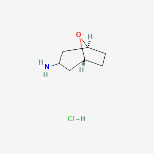 The mechanism of action of exo-8-Oxabicyclo[3.2.1]octan-3-amine hydrochloride involves its interaction with specific molecular targets and pathways. The compound’s bicyclic structure allows it to fit into certain biological receptors, potentially modulating their activity. This interaction can lead to various biological effects, depending on the specific target and pathway involved .
