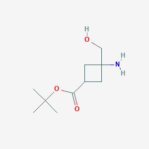 Tert-butyl (1s,3s)-3-amino-3-(hydroxymethyl)cyclobutane-1-carboxylate is a chemical compound with a unique structure that includes a cyclobutane ring substituted with an amino group, a hydroxymethyl group, and a tert-butyl ester