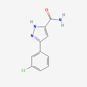 The mechanism of action of 3-(3-Chlorophenyl)-1H-pyrazole-5-carboxamide involves its interaction with specific molecular targets. It may act as an inhibitor of certain enzymes or receptors, thereby modulating biological pathways. The exact molecular targets and pathways can vary depending on the specific application and context of use.
