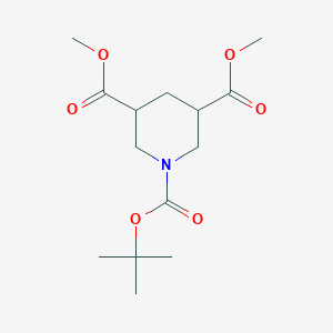 The mechanism of action of 1-Tert-butyl 3,5-dimethyl piperidine-1,3,5-tricarboxylate involves its interaction with molecular targets such as enzymes and receptors. The compound’s piperidine ring structure allows it to bind to specific sites on these targets, modulating their activity. The tert-butyl and dimethyl groups contribute to the compound’s binding affinity and specificity, while the carboxylate groups enhance its solubility and reactivity .