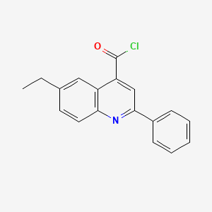 The mechanism of action of 6-Ethyl-2-phenylquinoline-4-carbonyl chloride involves its interaction with specific molecular targets, such as enzymes or receptors. The compound can inhibit enzyme activity by binding to the active site or allosteric site, thereby preventing substrate binding or altering enzyme conformation. In receptor binding studies, it can act as an agonist or antagonist, modulating receptor activity and downstream signaling pathways.