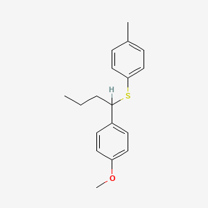 Nucleophilic Substitution: The Sₙ2 reaction between a thiolate and an alkyl halide is a fundamental method for thioether synthesis. pearson.commasterorganicchemistry.com In this context, the sodium or potassium salt of p-thiocresol (p-toluenethiolate) would be reacted with a 1-(p-methoxyphenyl)butyl halide, such as 1-chloro-1-(p-methoxyphenyl)butane. Thiolates are excellent nucleophiles and weaker bases compared to alkoxides, which minimizes competing elimination reactions. masterorganicchemistry.comchemistrysteps.com The reaction is typically performed in a polar aprotic solvent like DMSO or DMF. pearson.comlookchem.com