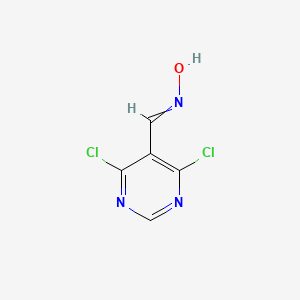 4,6-Dichloro-5-pyrimidinecarbaldehyde oxime is a halogenated pyrimidine derivative functionalized with an oxime group (-CH=N-OH) at the 5-position. The oxime is typically synthesized by reacting the aldehyde precursor with hydroxylamine under controlled conditions.