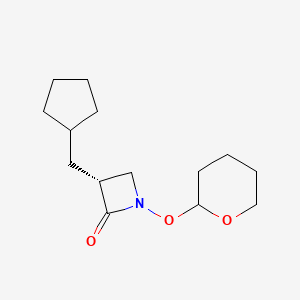 The compound (3R)-3-(Cyclopentylmethyl)-1-(tetrahydro-2H-pyran-2-yloxy)azetidin-2-one represents a modern iteration of these efforts, synthesized to explore non-antibiotic applications. Its development aligns with trends in stereoselective synthesis, as seen in methodologies reported by Marchand–Brynaert and others. The incorporation of a tetrahydro-2H-pyran-2-yloxy group and cyclopentylmethyl substituent reflects advances in modulating pharmacokinetic properties through strategic functionalization.