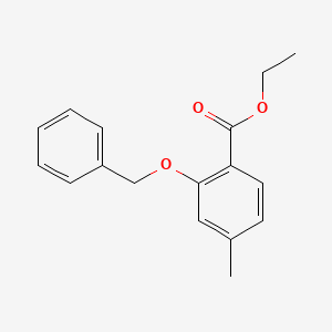 Ethyl 2-(benzyloxy)-4-methylbenzoate is a strategically important molecule in organic synthesis, valued for its specific arrangement of functional groups. The compound features an ethyl ester, a methyl group, and a benzyl-protected phenol (B47542) on an aromatic ring. This structure allows it to serve as a versatile intermediate and building block for creating a wide array of more complex chemical structures. vulcanchem.com The benzyl (B1604629) group acts as a protecting group for the phenolic hydroxyl, enabling chemists to perform reactions on other parts of the molecule without affecting the phenol. vulcanchem.com This protected group can be selectively removed later in a synthetic sequence.