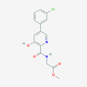 Methyl 2-[[5-(3-chlorophenyl)-3-hydroxypyridine-2-carbonyl]amino]acetate is a complex organic compound with significant potential in various scientific fields. This compound features a pyridine ring substituted with a hydroxyl group and a chlorophenyl group, making it a versatile molecule for various chemical reactions and applications.