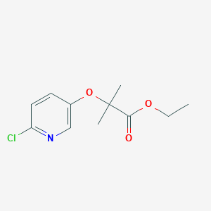 The synthesis typically involves the reaction of 6-chloropyridin-3-ol with ethyl 2-bromo-2-methylpropanoate in the presence of a base such as potassium carbonate. The reaction is conducted in an aprotic solvent like dimethylformamide (DMF) at elevated temperatures to facilitate nucleophilic substitution.