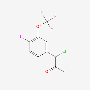 1-Chloro-1-(4-iodo-3-(trifluoromethoxy)phenyl)propan-2-one is a halogenated ketone with significant potential in medicinal chemistry. The unique structural features of this compound, including the presence of a chloro group, an iodo group, and a trifluoromethoxy substituent, confer distinct biological activities that are the focus of ongoing research.