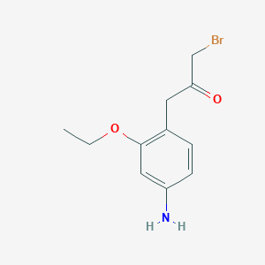 The synthesis of 1-(4-Amino-2-ethoxyphenyl)-3-bromopropan-2-one typically involves the bromination of a precursor compound. One common method is the bromination of 1-(4-Amino-2-ethoxyphenyl)propan-2-one using bromine or a brominating agent such as N-bromosuccinimide (NBS) in the presence of a catalyst like iron(III) bromide. The reaction is usually carried out in an organic solvent such as dichloromethane at room temperature.