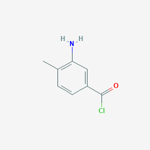 3-Amino-4-methylbenzoyl chloride is a benzoyl chloride derivative featuring an amino (-NH₂) group at the 3-position and a methyl (-CH₃) group at the 4-position of the aromatic ring. This compound is hypothesized to function as a reactive intermediate in organic synthesis, particularly in the preparation of amides, pharmaceuticals, or agrochemicals.