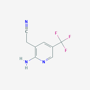 2-Amino-5-(trifluoromethyl)pyridine-3-acetonitrile is an organic compound with the molecular formula C8H5F3N2. It is a derivative of pyridine, a basic heterocyclic organic compound. This compound is characterized by the presence of an amino group at the second position, a trifluoromethyl group at the fifth position, and an acetonitrile group at the third position of the pyridine ring. It is known for its applications in various fields, including chemistry, biology, and industry.