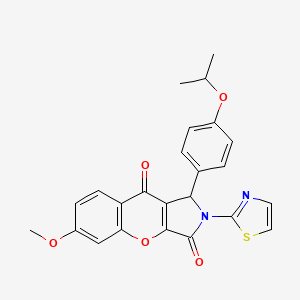6-Methoxy-1-[4-(propan-2-yloxy)phenyl]-2-(1,3-thiazol-2-yl)-1,2-dihydrochromeno[2,3-c]pyrrole-3,9-dione is a complex organic compound that features a unique combination of functional groups, including a methoxy group, a thiazole ring, and a chromeno-pyrrole core