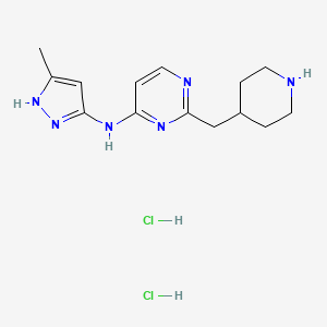 InChI=1S/C14H20N6.2ClH/c1-10-8-14(20-19-10)18-12-4-7-16-13(17-12)9-11-2-5-15-6-3-11;;/h4,7-8,11,15H,2-3,5-6,9H2,1H3,(H2,16,17,18,19,20);2*1H |