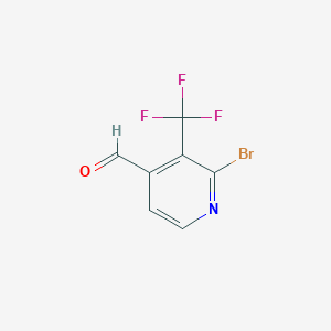 The synthesis of this compound typically involves the bromination and trifluoromethylation of isonicotinaldehyde. Common methods include using bromine and trifluoromethylating agents under controlled conditions to achieve the desired substitutions. The compound can undergo various chemical reactions, including oxidation to form 2-Bromo-3-(trifluoromethyl)isonicotinic acid and reduction to yield 2-Bromo-3-(trifluoromethyl)isonicotinalcohol.