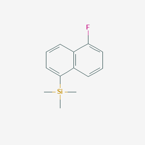 Naphthalene, 1-fluoro-5-(trimethylsilyl)- is an organosilicon compound that features a naphthalene core substituted with a fluoro group at the 1-position and a trimethylsilyl group at the 5-position.