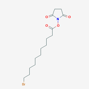 The mechanism of action of undecanoic acid, 11-bromo-, 2,5-dioxo-1-pyrrolidinyl ester involves its interaction with various molecular targets. The bromine atom can participate in nucleophilic substitution reactions, while the ester group can undergo hydrolysis or transesterification. These reactions enable the compound to modify biological molecules or act as a building block in synthetic pathways.