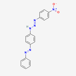 This compound, systematically known as N-[(4-nitrophenyl)diazenyl]-4-phenyldiazenylaniline or 1-(4-Nitrophenyl)-3-[4-(phenylazo)phenyl]-1-triazene, is an organic compound with a complex aromatic structure.[1][2] Its molecular framework consists of three interconnected phenyl rings, a nitro group, and a triazene (B1217601) linkage, which are responsible for its chromogenic properties.