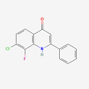 The mechanism of action of 7-Chloro-8-fluoro-2-phenylquinolin-4(1H)-one involves its interaction with specific molecular targets. For example, it may inhibit certain enzymes or receptors, leading to its biological effects. The exact pathways and targets can vary depending on the specific application and context of use.