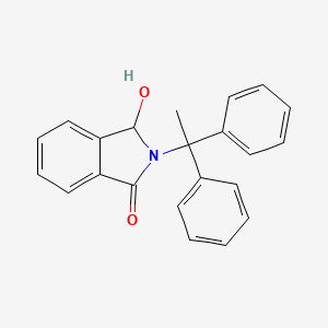 The synthesis of 2-(1,1-Diphenylethyl)-3-hydroxy-2,3-dihydro-1H-isoindol-1-one typically involves multi-step organic reactions. One common method includes the reaction of 1,1-diphenylethylene with appropriate reagents to introduce the hydroxy and isoindolone functionalities. The reaction conditions often require controlled temperatures and the use of catalysts to ensure the desired product is obtained with high yield and purity .