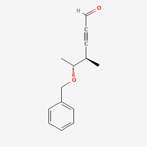 2-Hexynal, 4-methyl-5-(phenylmethoxy)-, (4R,5R)-: is a chemical compound with the molecular formula C14H16O2 . This compound is characterized by its unique structure, which includes a hexynal group, a methyl group, and a phenylmethoxy group. The (4R,5R) notation indicates the specific stereochemistry of the compound, which is crucial for its chemical behavior and interactions.