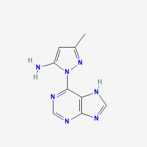 3-methyl-1-(7H-purin-6-yl)-1H-pyrazol-5-amine is a compound that belongs to the class of pyrazole derivatives. This compound is of significant interest in the field of medicinal chemistry due to its potential biological activities and applications in various scientific research areas.