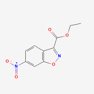 The synthesis of Ethyl 6-nitrobenzo[d]isoxazole-3-carboxylate typically involves the nitration of benzo[d]isoxazole derivatives followed by esterification. One common method includes the nitration of benzo[d]isoxazole with nitric acid in the presence of sulfuric acid to introduce the nitro group at the 6-position. The resulting nitrobenzo[d]isoxazole is then reacted with ethanol and a suitable catalyst, such as sulfuric acid or hydrochloric acid, to form the ethyl ester.