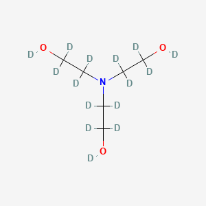 The synthesis of this compound can be conceptualized by extending the general principles of deuterated amine synthesis to the specific structure of triethanolamine (B1662121). The non-deuterated parent compound, triethanolamine, is produced industrially by the reaction of ethylene oxide with aqueous ammonia (B1221849). chemicalbook.com