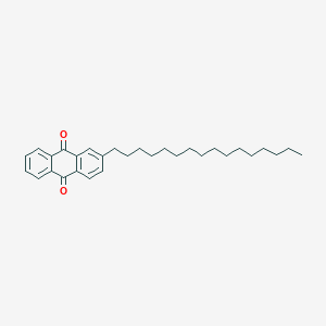 Synthetic Routes and Reaction Conditions: The synthesis of 2-Hexadecylanthracene-9,10-dione typically involves the substitution of anthracene at the 9 and 10 positions. One common method is the Friedel-Crafts acylation reaction, where anthracene reacts with hexadecyl chloride in the presence of a Lewis acid catalyst like aluminum chloride (AlCl3). The reaction conditions usually involve refluxing the reactants in an inert solvent such as dichloromethane .