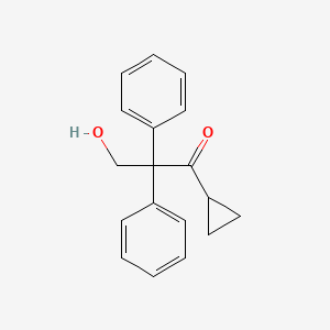 The synthesis of 1-Cyclopropyl-3-hydroxy-2,2-diphenylpropan-1-one can be achieved through several synthetic routes. One common method involves the reaction of cyclopropyl ketone with benzaldehyde in the presence of a base to form the desired product. The reaction conditions typically include the use of a strong base such as sodium hydroxide or potassium hydroxide, and the reaction is carried out under reflux conditions to ensure complete conversion.
