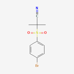 The mechanism of action of 2-(4-Bromobenzenesulfonyl)-2-methylpropanenitrile involves its interaction with specific molecular targets. The sulfonyl group can act as an electrophile, reacting with nucleophilic sites on biomolecules. The nitrile group can also participate in various biochemical reactions, potentially leading to the formation of active metabolites. The exact pathways and targets depend on the specific application and context in which the compound is used.