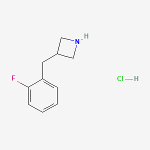 The synthesis of 3-[(2-Fluorophenyl)methyl]azetidine hydrochloride typically involves the reaction of 2-fluorobenzyl chloride with azetidine under basic conditions. The reaction is carried out in the presence of a base such as sodium hydride or potassium carbonate, which facilitates the nucleophilic substitution of the chloride by the azetidine ring . The resulting product is then treated with hydrochloric acid to obtain the hydrochloride salt.
