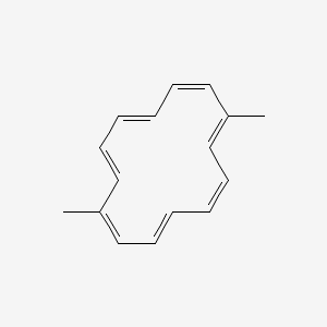 1,3,5,7,9,11,13-Cyclotetradecaheptaene, 1,8-dimethyl- is a hydrocarbon compound with the molecular formula C16H18. This compound is a derivative of cyclotetradecaheptaene, which is also known as [14]annulene. The compound is characterized by its conjugated ring structure, which contains alternating double bonds. It is known for its dark-red needle-like crystals and plays a significant role in the study of aromaticity and conjugated systems .