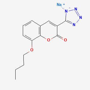 2H-1-Benzopyran-2-one, 8-butoxy-3-(1H-tetrazol-5-yl)-, sodium salt: is a chemical compound known for its unique structure and properties. It is a derivative of benzopyran, a class of organic compounds that are widely studied for their diverse biological activities. The compound features a butoxy group at the 8th position and a tetrazolyl group at the 3rd position, making it a subject of interest in various scientific fields .
