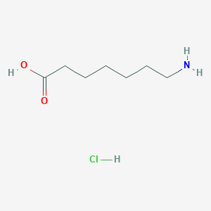 7-Aminoheptanoic acid hydrochloride is a derivative of the omega-amino acid, 7-aminoheptanoic acid. It is a bifunctional molecule featuring a terminal carboxylic acid and a primary amine, which exists as a hydrochloride salt. This structure makes it a versatile building block in various chemical and pharmaceutical applications. Its utility is prominent in peptide synthesis, where it can be incorporated to modify peptide backbones, thereby influencing their stability, solubility, and biological activity. Furthermore, it serves as a key intermediate in the synthesis of polymers, specialty chemicals, and pharmaceutical compounds. The hydrochloride salt form often enhances the compound's stability and solubility in aqueous media, making it particularly suitable for use in biological studies and formulations.