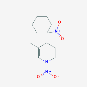 Pyridine, 1,4-dihydro-3-methyl-1-nitro-4-(1-nitrocyclohexyl)- is a complex organic compound belonging to the class of dihydropyridines Dihydropyridines are known for their diverse pharmaceutical applications, particularly as calcium channel blockers
