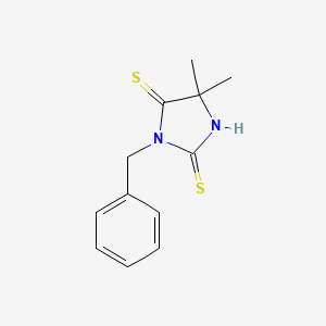 What sets 2,4-Imidazolidinedithione, 5,5-dimethyl-3-(phenylmethyl)- apart from these similar compounds is its dithione group, which imparts unique chemical reactivity and potential applications. The presence of the phenylmethyl group also contributes to its distinct properties and interactions in various chemical and biological systems.